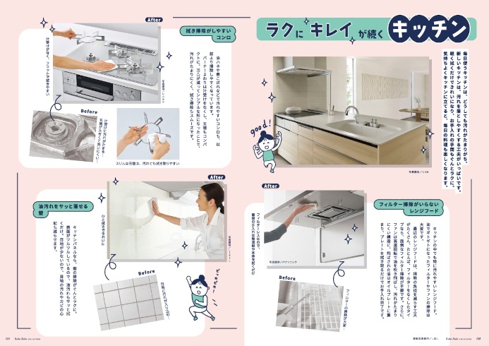 イラストや写真をメインに取り上げ、リフォームの経験がない消費者にもわかりやすいように解説。リフォーム会社・工務店が伝えたいリフォームするメリットを訴求します。